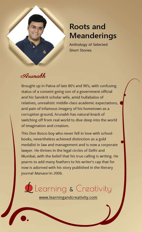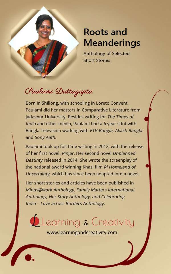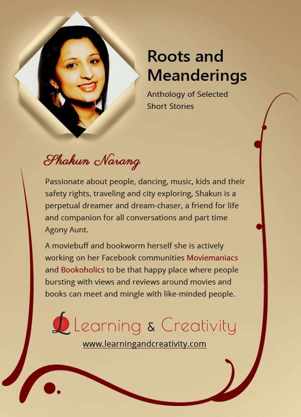 Just as engagingly myriad is the selection of short stories in this Anthology, so is the cross-section of authors who have participated. From established authors who already have published books and anthologies to their credit to newbie first time short story writers, from teenaged writers to professionals who are passionate about storytelling, Roots and Meanderings has brought together the most unusual and yet engaging mix of authors.